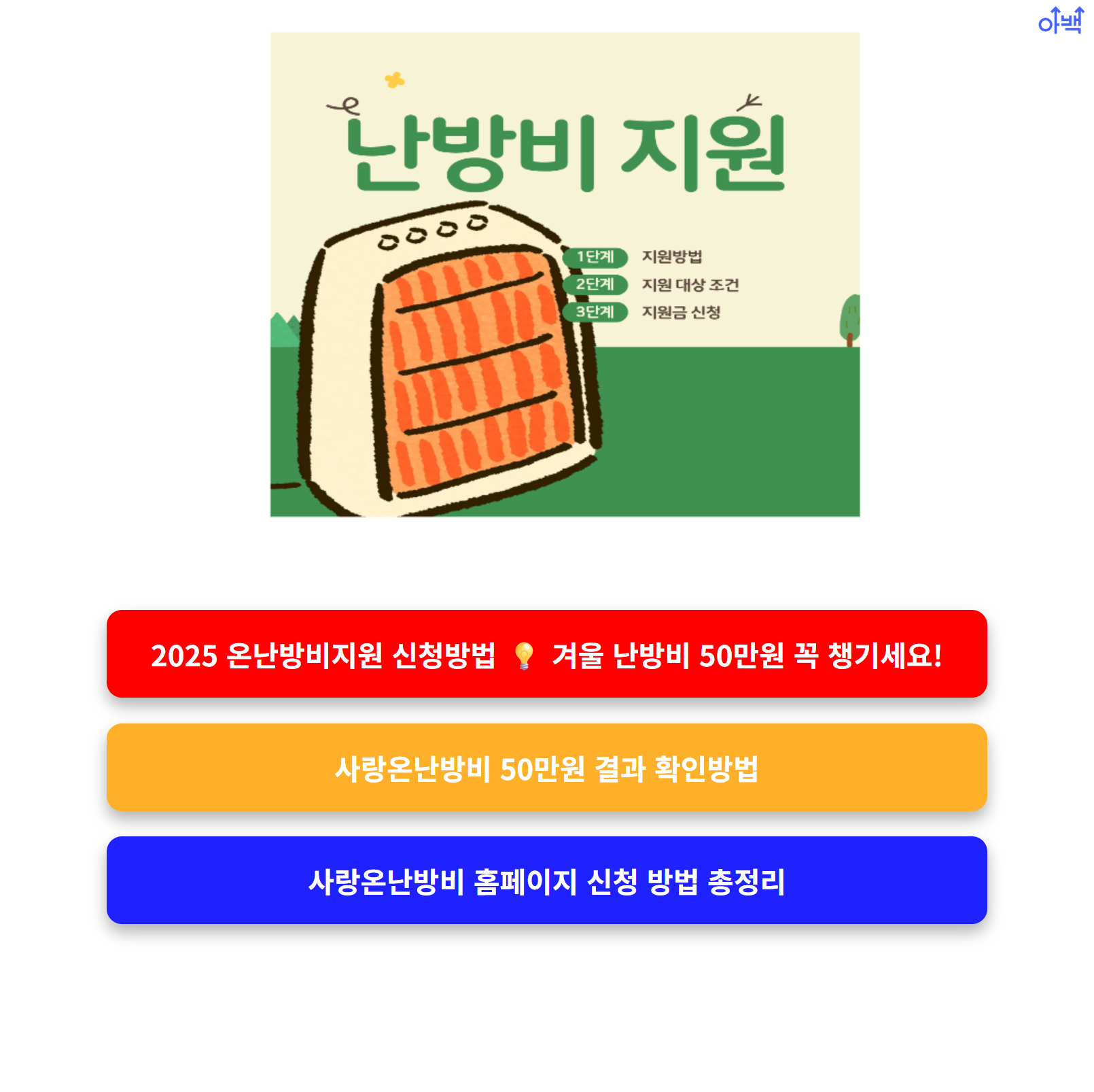 겨울철 난방비 부담이 큰 취약계층, 사회복지시설, 사회적기업 등을 대상으로 하며, 매년 10~11월경 접수를 받고 최대 50만원 상당의 난방비를 지원합니다.