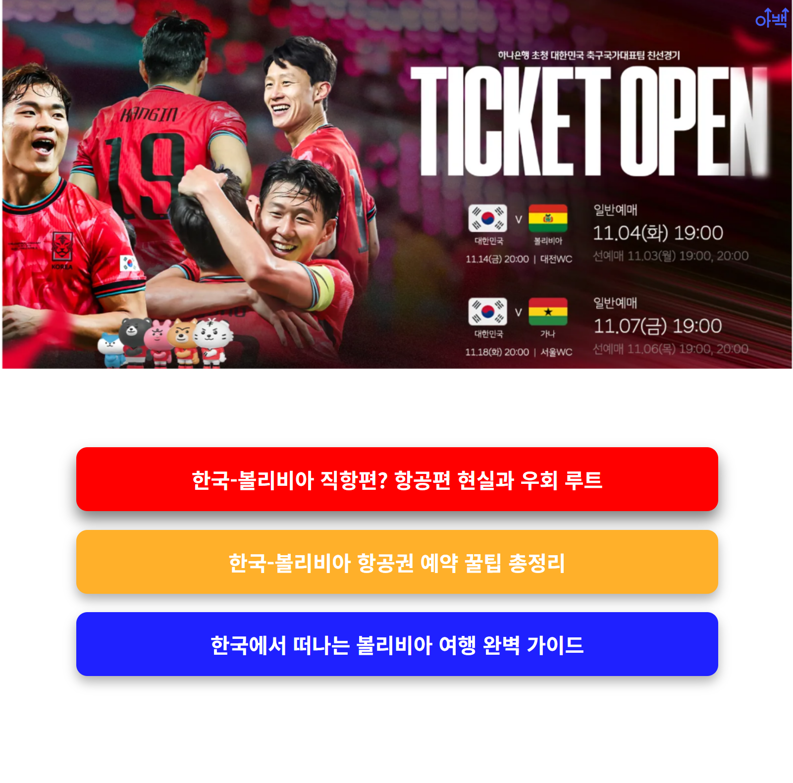 드디어 기다리던 축구 빅매치가 열립니다. 2025년 11월, 한국 vs 볼리비아 A매치가 대전월드컵경기장에서 개최됩니다. 이 경기를 직접 관람하려는 팬이라면, 예매에 실패하지 않기 위한 전략이 필요합니다. PLAY KFA 공식사이트를 통한 예매 흐름은 까다롭지 않지만, 사전 준비 여부에 따라 결과가 달라질 수 있습니다. 본 글에서는 예매 절차부터 좌석 정보, 준비 꿀팁까지 전부 알려드립니다.👇
