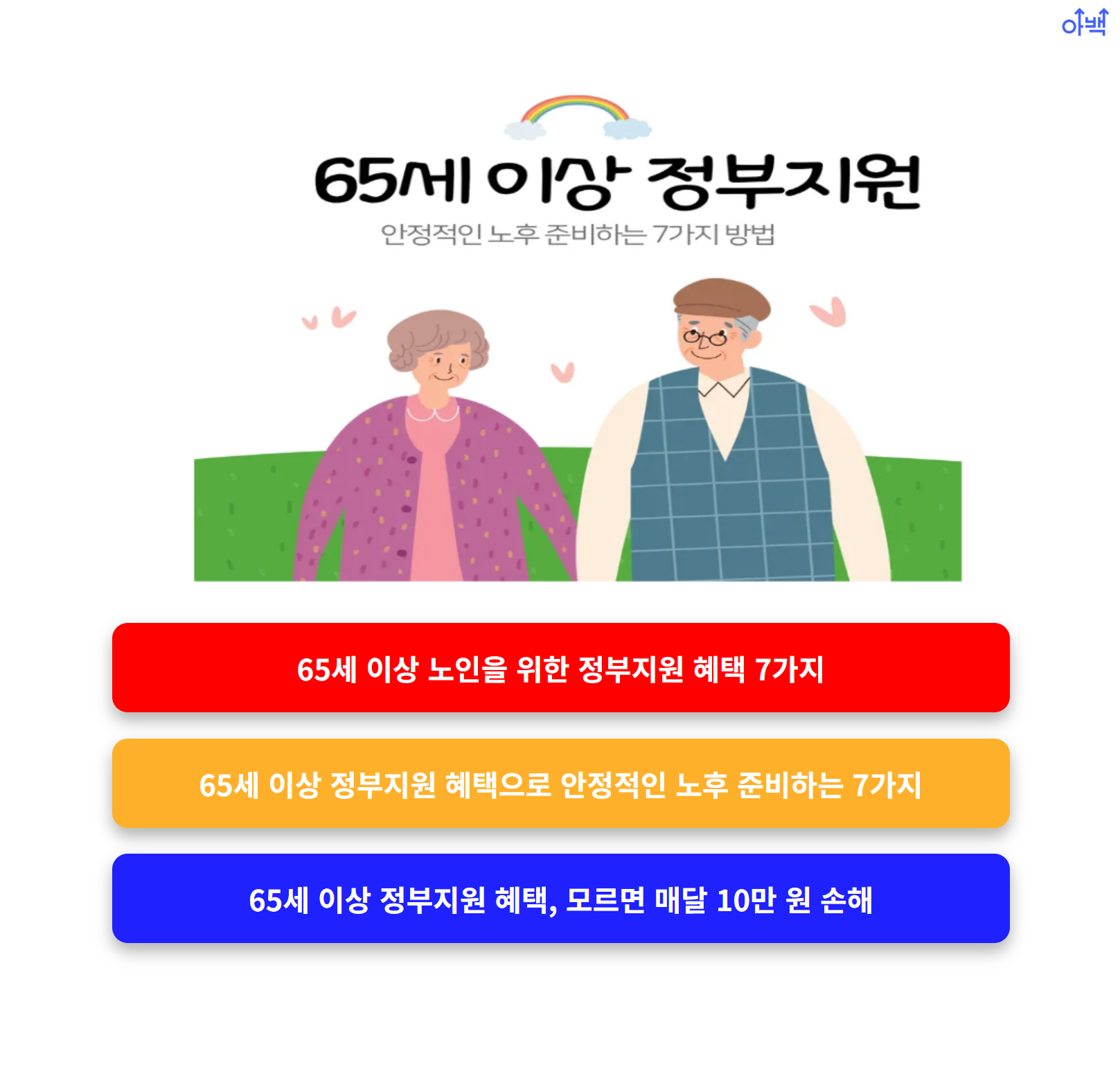 지금 소개하는 '65세 이상 정부지원 혜택 7가지'를 잘 활용하면 경제적 부담을 줄이고, 안정된 노후를 준비할 수 있습니다.👇