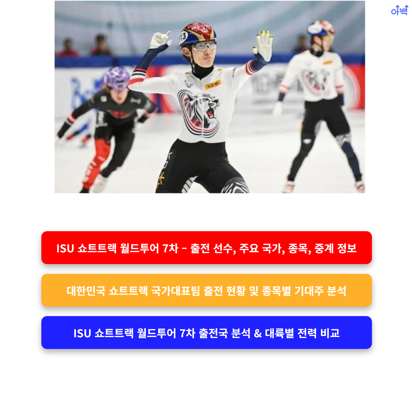 - 🇰🇷 대한민국 – 계주, 1000m 강세 / 세계랭킹 1~3위 다수 포진